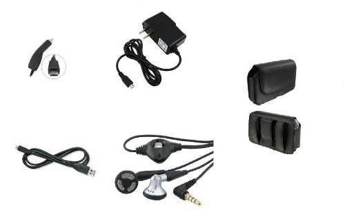 1-) 100% new high quality 3.5mm Stereo Headset.Talk on the phone, watch video clips, play games or listen to songs with a stereo headset optimized for your smartphone. 3.5mm, Stereo Headset w/ answering, ending and muting phone calls Please consult with your phone's user manual and your service provider for the availability of these features. Phone & Ear bud features are limited to the phone's capability and the service provider's default settings. 2-) Material: Synthetic Leather. Leather case features smooth synthetic leather and heavy duty stitching 3-)Latest Technology, Highest quality NON-OEM Rapid Car / Auto / Plug in / Vehicle power charger for your Cell Phone.(12~24v DC) - Brand New in package. Never been used. - Durable coil cord for extendable reach and use. - Provides power to your phone while simultaneously charging your phone's battery. - Small and lightweight for convenience, portability and storage. - Original battery will be charged to 95% capacity within one to three hours. - Talk while you are charging your phone at the same time. - I/C Chip technology prevents your phone and battery against overcharging. - LED indicator lights up when charger is ready and powered. Phone Not Included. 4-)Latest Technology, Highest quality NON-OEM Rapid Home / Wall / AC / Travel / House / Battery charger for your Cell Phone.Brand New in package. Never been used.Durable cord for extendable reach and use. - Provides power to your phone while simultaneously charging your phone's battery. - I/C Chip technology prevents your phone and battery against overcharging. - Phone Not Included. 5-)USB Data Cable for Cell / PDA Phones - Start syncing your phone with a PC today through this premium quality data cable.Connect your cell phone to your PC/Laptop to access and synchronize your phone book contacts, e-mails, and appointments, change ring tones and background pictures, take advantage of other useful applications!