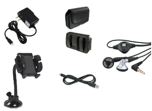 1-) 100% new high quality 3.5mm Stereo Headset.Talk on the phone, watch video clips, play games or listen to songs with a stereo headset optimized for your smartphone. 3.5mm, Stereo Headset w/ answering, ending and muting phone calls Please consult with your phone's user manual and your service provider for the availability of these features. Phone & Ear bud features are limited to the phone's capability and the service provider's default settings. 2-) Material: Synthetic Leather. Leather case features smooth synthetic leather and heavy duty stitching 3-)Enjoy mounting your iPhone and other type of phones wherever you go! This is perfect for when you use with Nav, Watching videos, or simply just to keep it up in your sight. Includes: 1- Adjustable Universal Holder 1- Adjustable Arm with Power-Vac Suction Cup. 4-)Latest Technology, Highest quality NON-OEM Rapid Home / Wall / AC / Travel / House / Battery charger for your Cell Phone.Brand New in package. Never been used.Durable cord for extendable reach and use. - Provides power to your phone while simultaneously charging your phone's battery. - I/C Chip technology prevents your phone and battery against overcharging. - Phone Not Included. 5-)USB Data Cable for Cell / PDA Phones - Start syncing your phone with a PC today through this premium quality data cable.Connect your cell phone to your PC/Laptop to access and synchronize your phone book contacts, e-mails, and appointments, change ring tones and background pictures, take advantage of other useful applications!