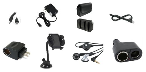 1-) 100% new high quality 3.5mm Stereo Headset.Talk on the phone, watch video clips, play games or listen to songs with a stereo headset optimized for your smartphone. 3.5mm, Stereo Headset w/ answering, ending and muting phone calls Please consult with your phone's user manual and your service provider for the availability of these features. Phone & Ear bud features are limited to the phone's capability and the service provider's default settings. 2-) Material: Synthetic Leather. Leather case features smooth synthetic leather and heavy duty stitching 3-)Enjoy mounting your iPhone and other type of phones wherever you go! This is perfect for when you use with Nav, Watching videos, or simply just to keep it up in your sight. Includes: 1- Adjustable Universal Holder 1- Adjustable Arm with Power-Vac Suction Cup. 4-)Latest Technology, Highest quality NON-OEM Rapid Car / Auto / Plug in / Vehicle power charger for your Cell Phone.Brand New in package. Never been used. - Durable coil cord for extendable reach and use. I/C Chip technology prevents your phone and battery against overcharging. - LED indicator lights up when charger is ready and powered. Phone Not Included.5-)Latest Technology, Highest quality NON-OEM Rapid Home / Wall / AC / Travel / House / Battery charger for your Cell Phone.Brand New in package. Never been used.Durable cord for extendable reach and use. - Provides power to your phone while simultaneously charging your phone's battery. - I/C Chip technology prevents your phone and battery against overcharging. - Phone Not Included. 6-)USB Data Cable for Cell / PDA Phones - Start syncing your phone with a PC today through this premium quality data cable.Connect your cell phone to your PC/Laptop to access and synchronize your phone book contacts, e-mails, and appointments, change ring tones and background pictures, take advantage of other useful applications!