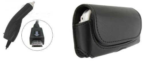 ITEM 1) Material: Synthetic Leather. Leather case features smooth synthetic leather and heavy duty stitching. ITEM 2) Latest Technology, Highest quality NON-OEM Rapid Car / Auto / Plug in / Vehicle power charger for your Cell Phone.(12~24v DC) - Brand New in package. Never been used. - Durable coil cord for extendable reach and use. - Provides power to your phone while simultaneously charging your phone's battery. - Small and lightweight for convenience, portability and storage. - Original battery will be charged to 95% capacity within one to three hours. - Talk while you are charging your phone at the same time. - I/C Chip technology prevents your phone and battery against overcharging. - LED indicator lights up when charger is ready and powered. Phone Not Included.